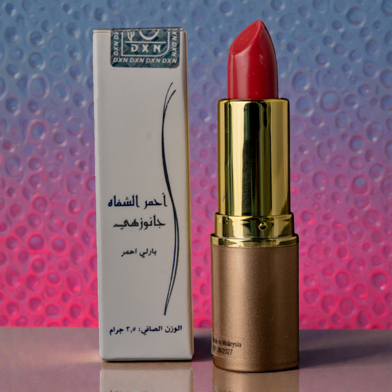 DXN Ganozhi Lipstick is a hydrating, moisturizing lipstick from DXN known for adding natural shine and color with nourishing ingredients like Aloe Vera Extract, Shea Butter, and Vitamin E, making lips feel soft, supple, and comfortable, gliding on smoothly for a lustrous, healthy look, and often highlighted for its lack of lead.