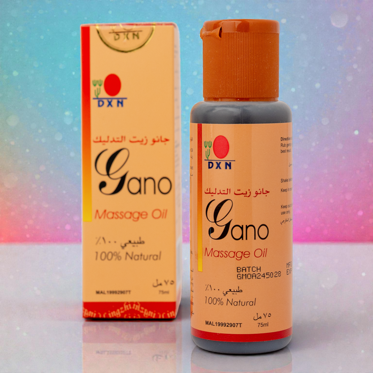 DXN Gano Massage Oil is an all-natural body oil blended with premium palm oil and antioxidant-rich Ganoderma lucidum extract, designed to soothe muscles, promote relaxation, relieve tension, nourish skin, and reduce the appearance of wrinkles, making it suitable for all skin types and ages for a rejuvenating massage experience.